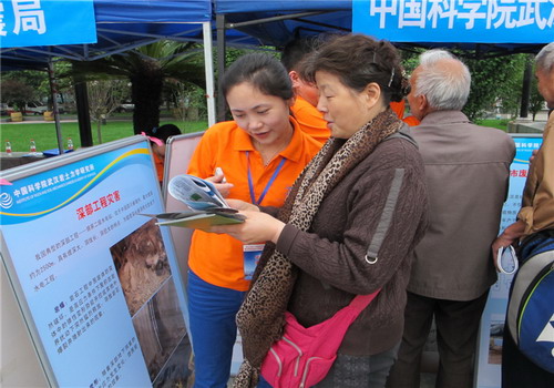 5月16日,由湖北省科技廳、省委宣傳部、省科協(xié)等聯(lián)合主辦的“2014年湖北省科技活動(dòng)周”活動(dòng)在宜昌市夷陵廣場(chǎng)啟動(dòng)。中科院武漢巖土力學(xué)研究所在武漢分院的統(tǒng)一組織下,科普小組一行10人參加了此次活動(dòng),此次武漢巖土所的科普活動(dòng)主題是:走進(jìn)巖土、綠色生活。