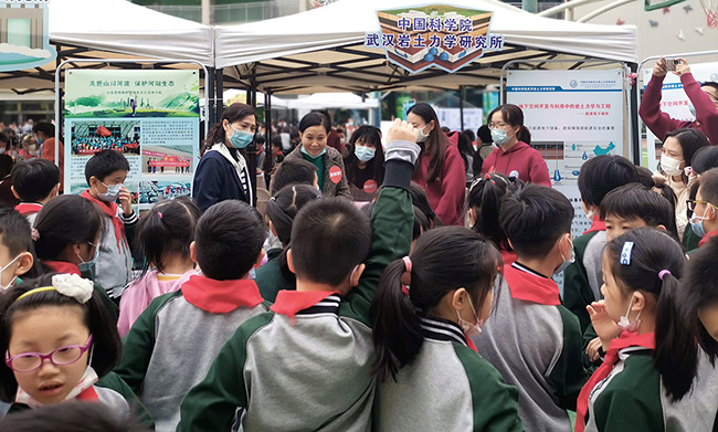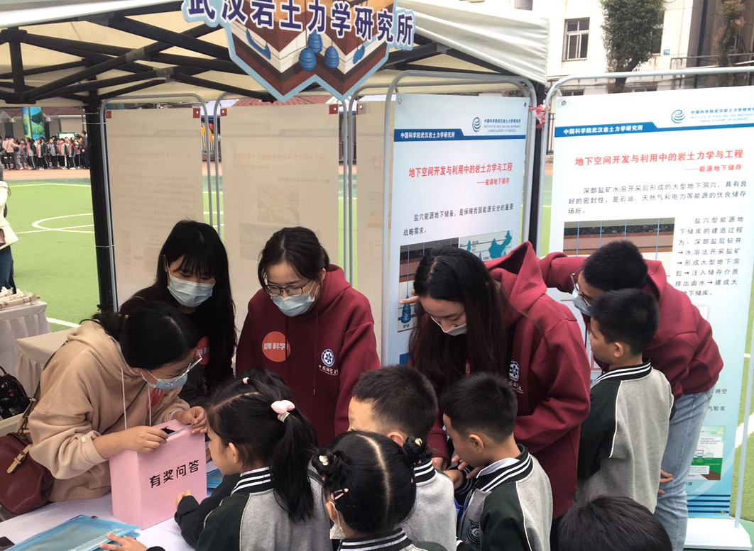 11月5日,武漢巖土所參與中國科學(xué)院第三屆科學(xué)節(jié)武漢分院主場活動?;顒釉诤笔∥洳谝恍W(xué)舉辦,武漢巖土所科普團隊在現(xiàn)場重點向參加科學(xué)節(jié)的水一小師生介紹了我所在能源地下儲存、城市固廢垃圾處理與城市地下空間開發(fā)利用等方面的研究進展與創(chuàng)新成果。