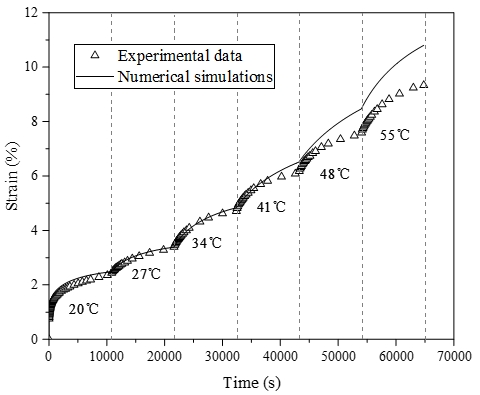 ????對此,中國科學院武漢巖土力學研究所特殊土力學與工程安全研究中心路基工程研究團隊盧正研究員和趙陽博士等人在自主研發(fā)的新型土工格室材料的基礎上,開展了一系列有關常規(guī)蠕變和加速蠕變的試驗及模擬計算研究。團隊通過考慮蠕變過程中的損傷效應,建立了基于蠕變損傷的修正Burgers模型,并通過試驗結(jié)果進行了對比驗證。該模型能夠同時考慮材料的彈黏塑性變形,因此修正后的Burgers模型可精準預測新型土工格室材料長達數(shù)十年的蠕變變形。此外,團隊基于非線性三參數(shù)模型,從材料在升溫過程中的黏性變形和非黏性變形視角出發(fā),對加速蠕變行為的機理進行了探討。研究結(jié)果表明,非線性三參數(shù)模型對于新型土工格室材料蠕變行為具有較強的適用性,在考慮溫度修正后,該模型能夠精確反應土工格室材料因升溫引起的加速蠕變現(xiàn)象。