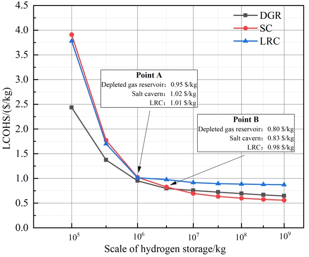 ????氫能是未來全球極具發(fā)展?jié)摿Φ那鍧嵞茉?,不僅能平抑太陽能和風(fēng)能等新能源的波動性與間歇性,還能作為大規(guī)模儲能的載體,已成為國際能源領(lǐng)域的研究熱點。儲氫是連接氫能上下游產(chǎn)業(yè)的重要樞紐,缺乏大規(guī)模儲氫技術(shù)是制約氫能產(chǎn)業(yè)高質(zhì)量發(fā)展的瓶頸。小規(guī)模和中等規(guī)模的氫存儲難以滿足區(qū)域能源調(diào)峰、國家戰(zhàn)略儲備及能源結(jié)構(gòu)轉(zhuǎn)型的需求。鹽穴、枯竭氣藏和襯砌硐室等地下儲氫方式,被視為實現(xiàn)大規(guī)模儲氫的優(yōu)良解決方案,已成為國內(nèi)外儲氫領(lǐng)域的研究熱點。然而,面向工程決策的系統(tǒng)性經(jīng)濟(jì)評估仍相對薄弱,缺乏在統(tǒng)一分析框架下針對不同儲氫方案及關(guān)鍵成本影響因素的研究,這些問題限制了技術(shù)成果的工程化推廣,亟需開展深入研究以支撐地質(zhì)儲氫基礎(chǔ)設(shè)施的建設(shè)與布局。